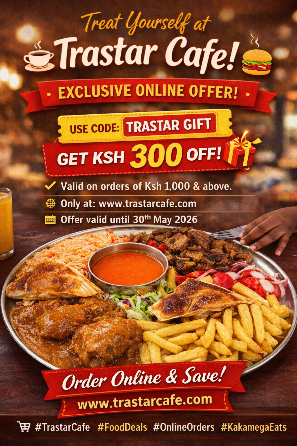 Use coupon code TRASTAR GIFT and enjoy a KSh 300 gift 🎉